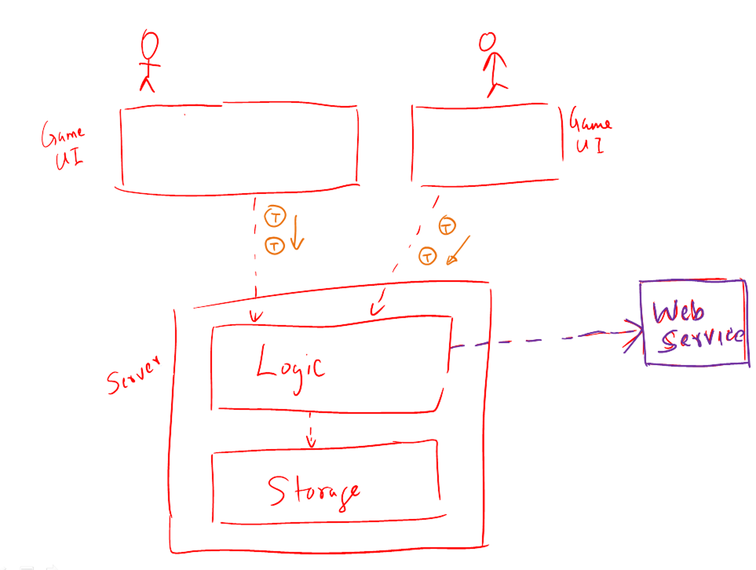 - Client-server – Clients can be the game UI running on player PCs. The server can be the game logic running on one machine.