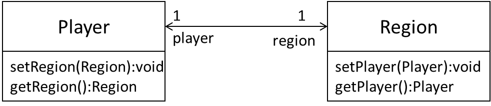 class Player{ Region region; void setRegion(Region r) { region = r; } Region getRegion() { return region; }} // Region class is similar