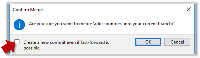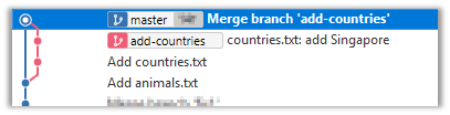 11. Go back to the master branch and merge the add-countries branch onto the master branch (similar to steps 8-9 above). While you might expect to see something