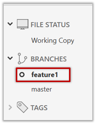 Right-click on the feature1 branch and choose Merge....