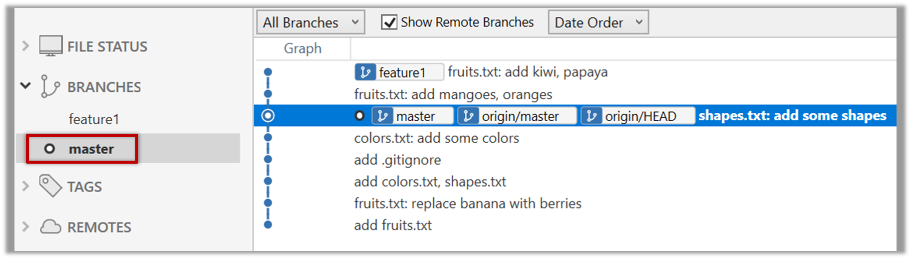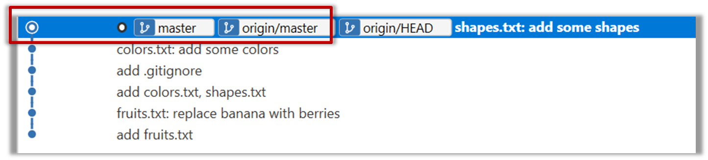 Observe how the add-intro branch is now merged to the master branch in your local repo as well.