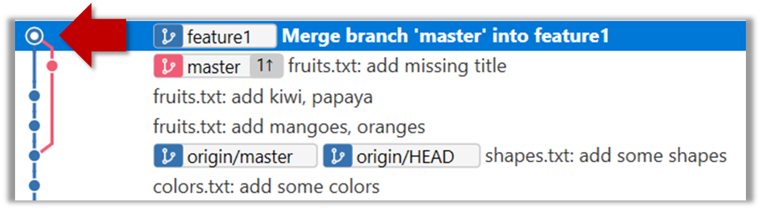 9. Merge feature1 to the master branch, giving and end-result like this: