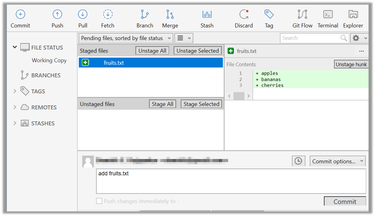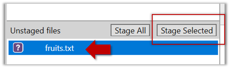 Select the fruits.txt and click on the Stage Selected button