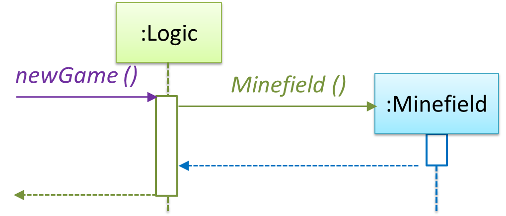 Now, let us look at what other objects and interactions are needed to support the newGame() operation. It is likely that a new Minefield object is created when the newGame() method is called.