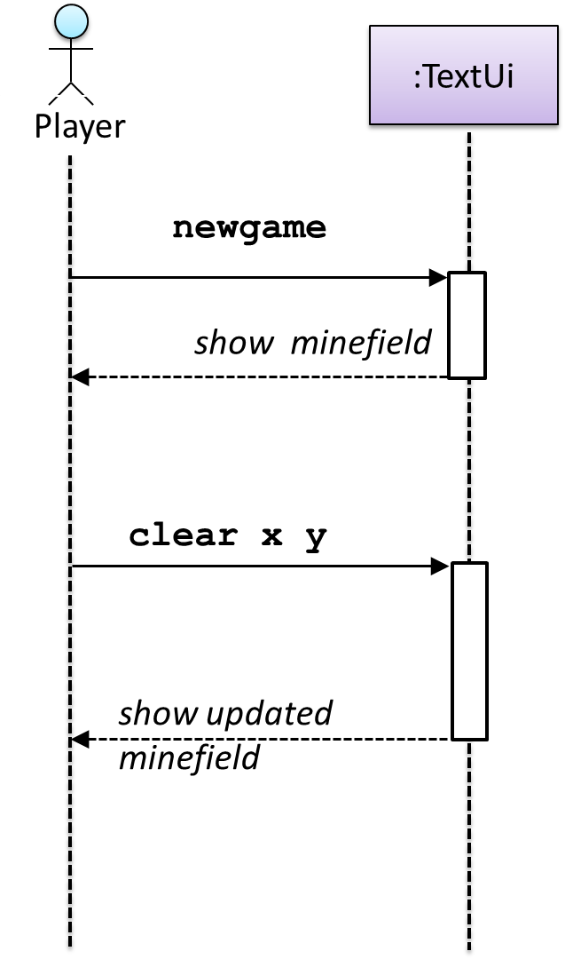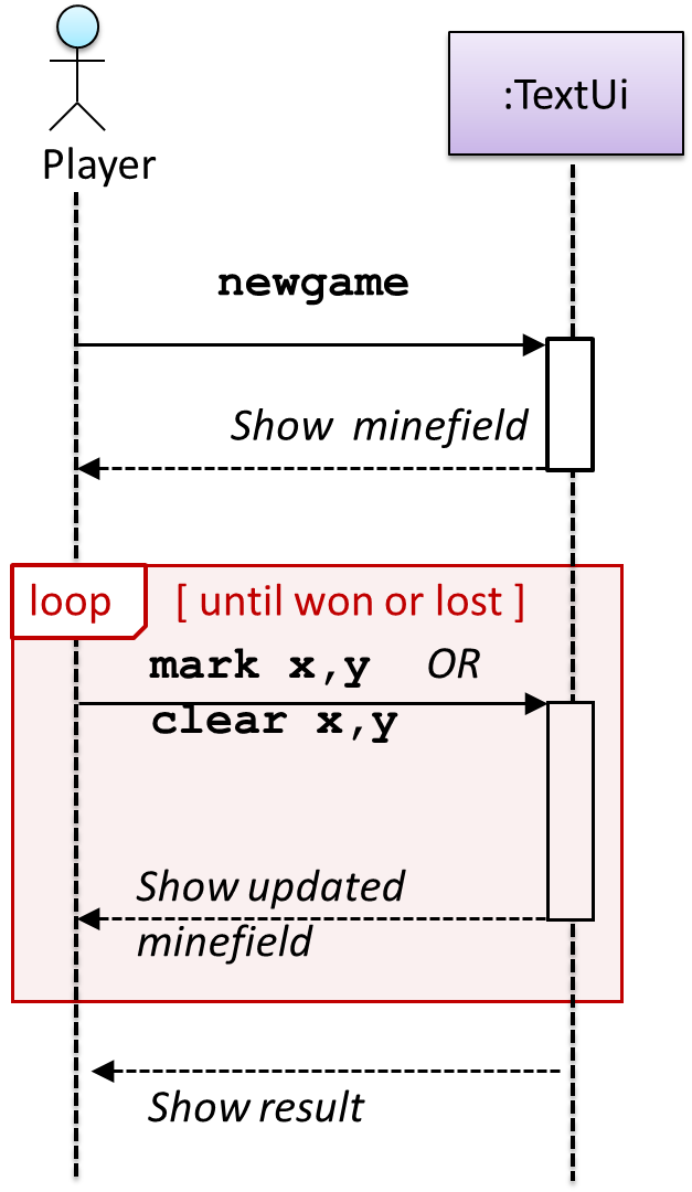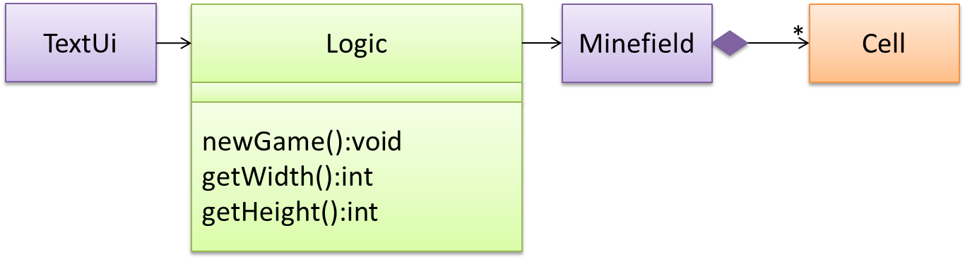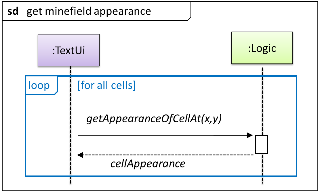 The above diagram assumes that W and H are the only information TextUi requires to display the minefield to the Player. Note that there could be other ways of doing this.