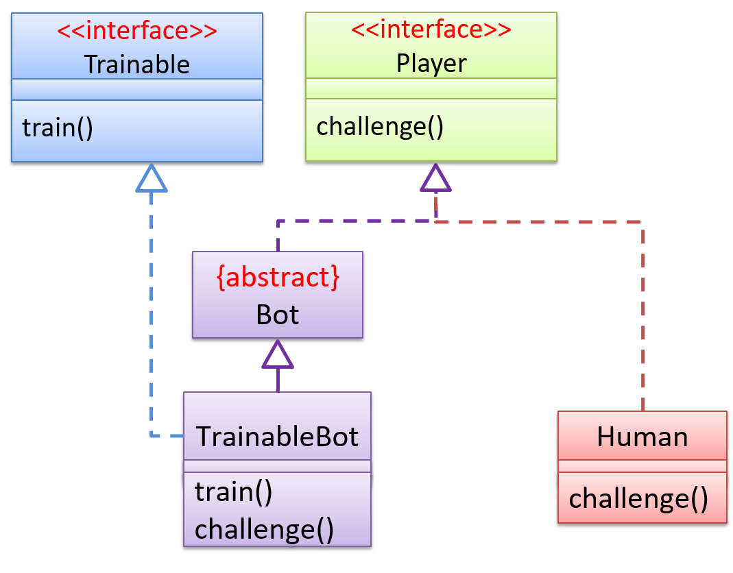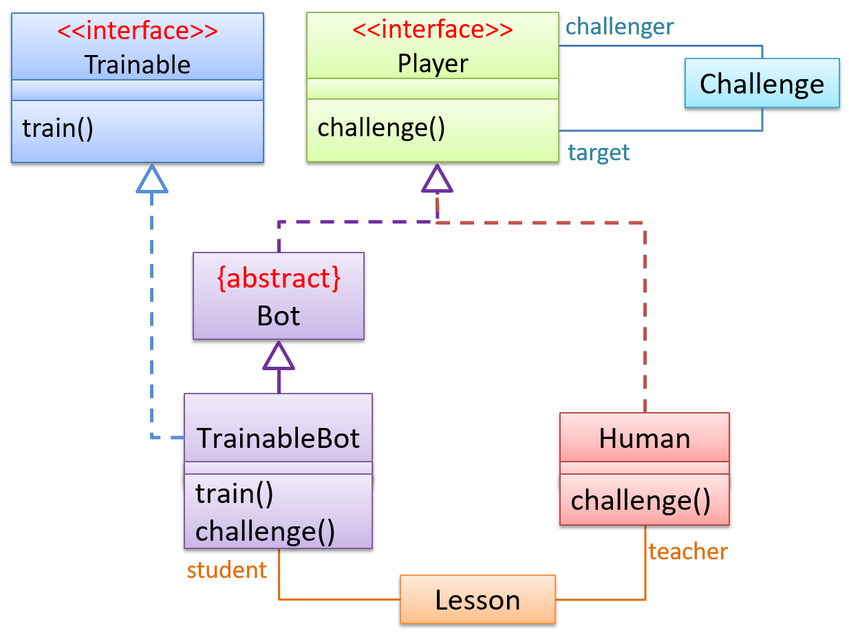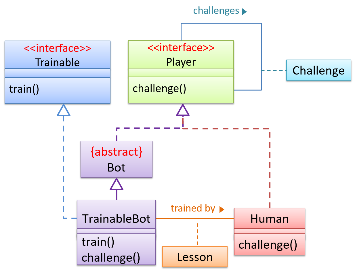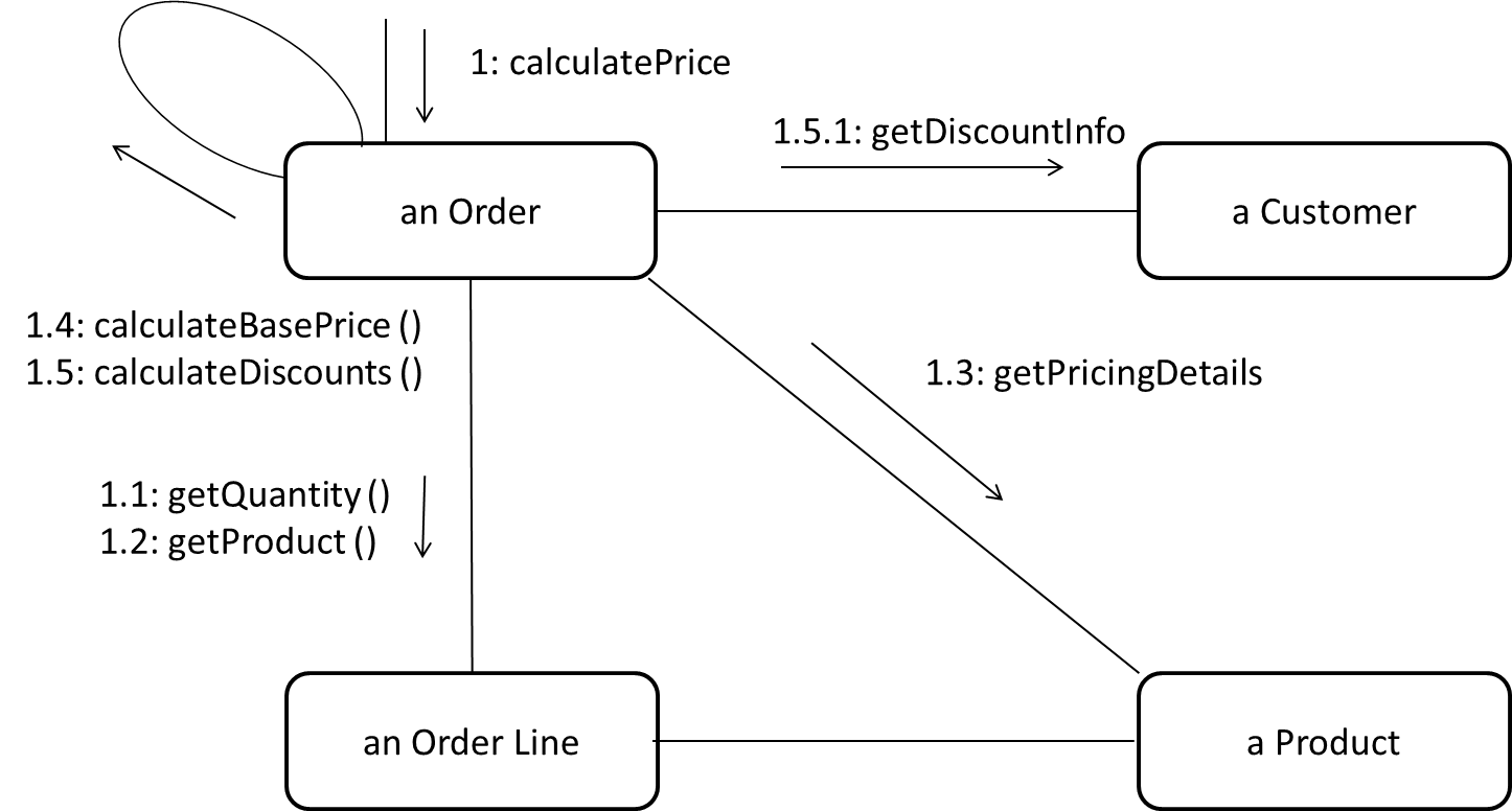 - A senior developer draws a class diagram to propose a design for an OOP software and passes it to a junior programmer to implement.