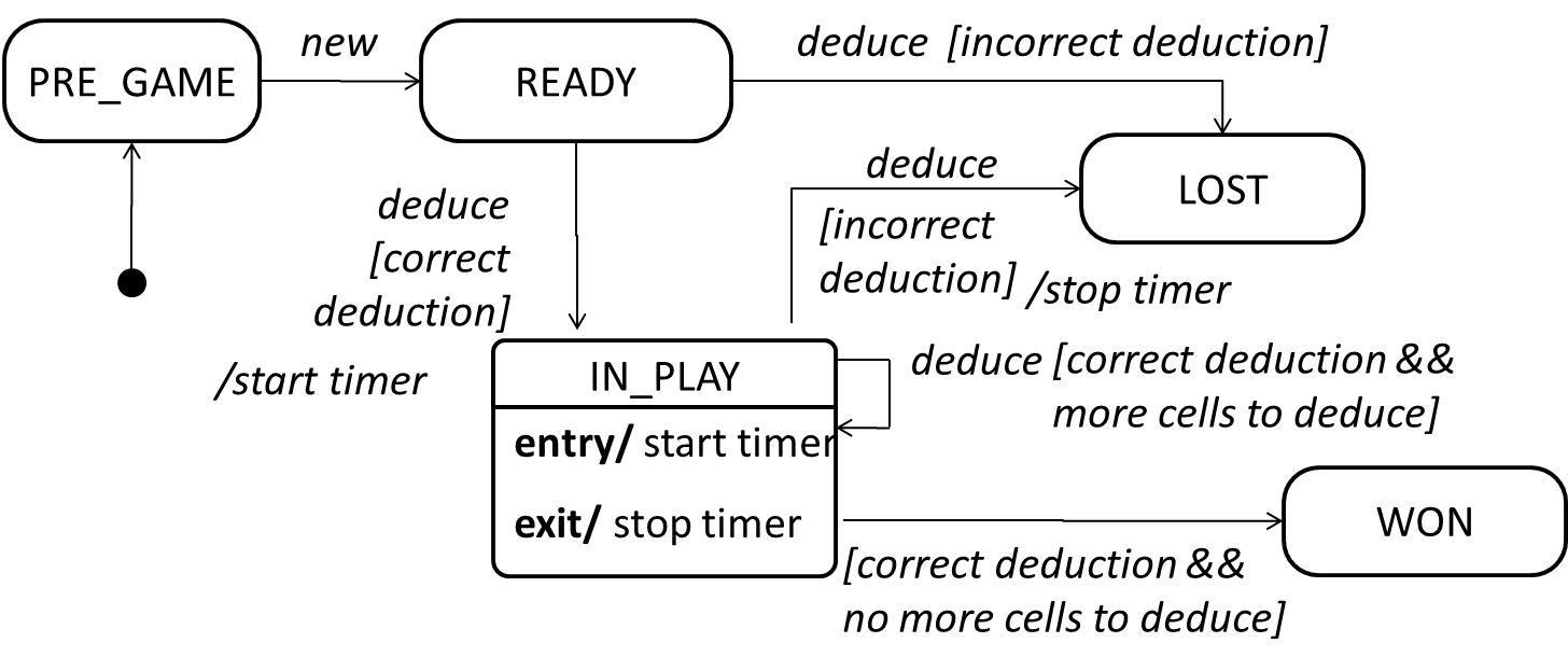 clearCellAt(int x, int y)markCellAt(int x, int y)getGameState() :GAME_STATE (GAME_STATE: READY, IN_PLAY, WON, LOST, …)