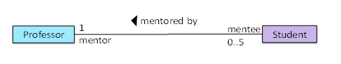 Explanation: '1’ is a multiplicity, ‘mentored by’ is a label, and ‘mentor’ is a role.