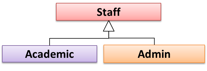 In the example above, AcademicStaff is a SalariedStaff. An AcademicStaff object can be used anywhere a SalariedStaff object is expected e.g. SalariedStaff ss = new AcademicStaff().