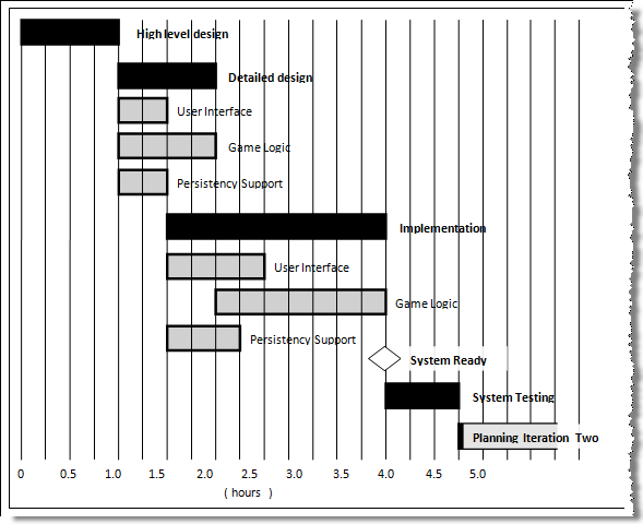 The high level tasks for a single iteration of a small project could look like the following: