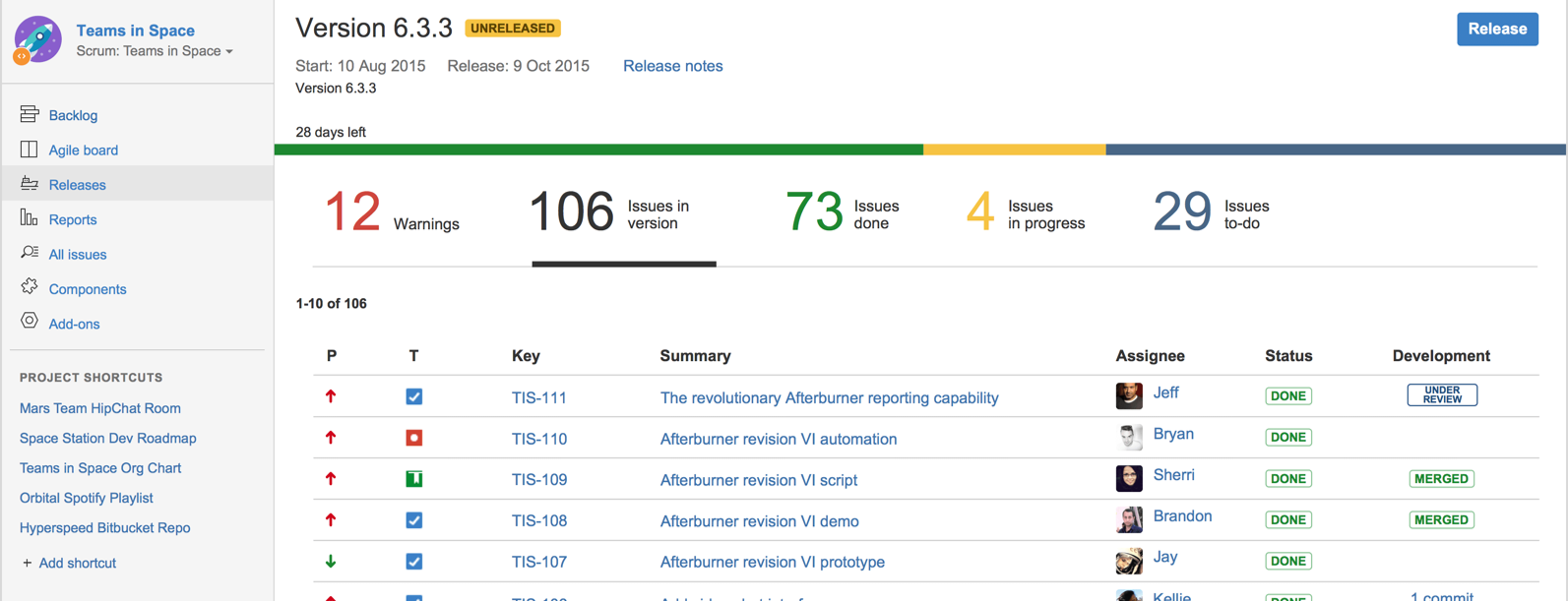 A screenshot from the Jira Issue tracker software (Jira is part of the BitBucket project management tool suite):