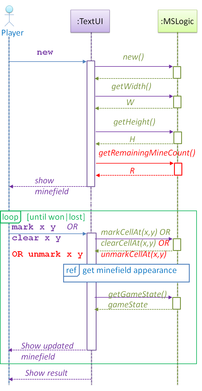 - Postconditions: Cell at x,y changes state to ZERO, ONE, TWO, THREE, …, EIGHT, or INCORRECTLY_CLEARED. Game state changes to IN_PLAY, WON or LOST as appropriate.
