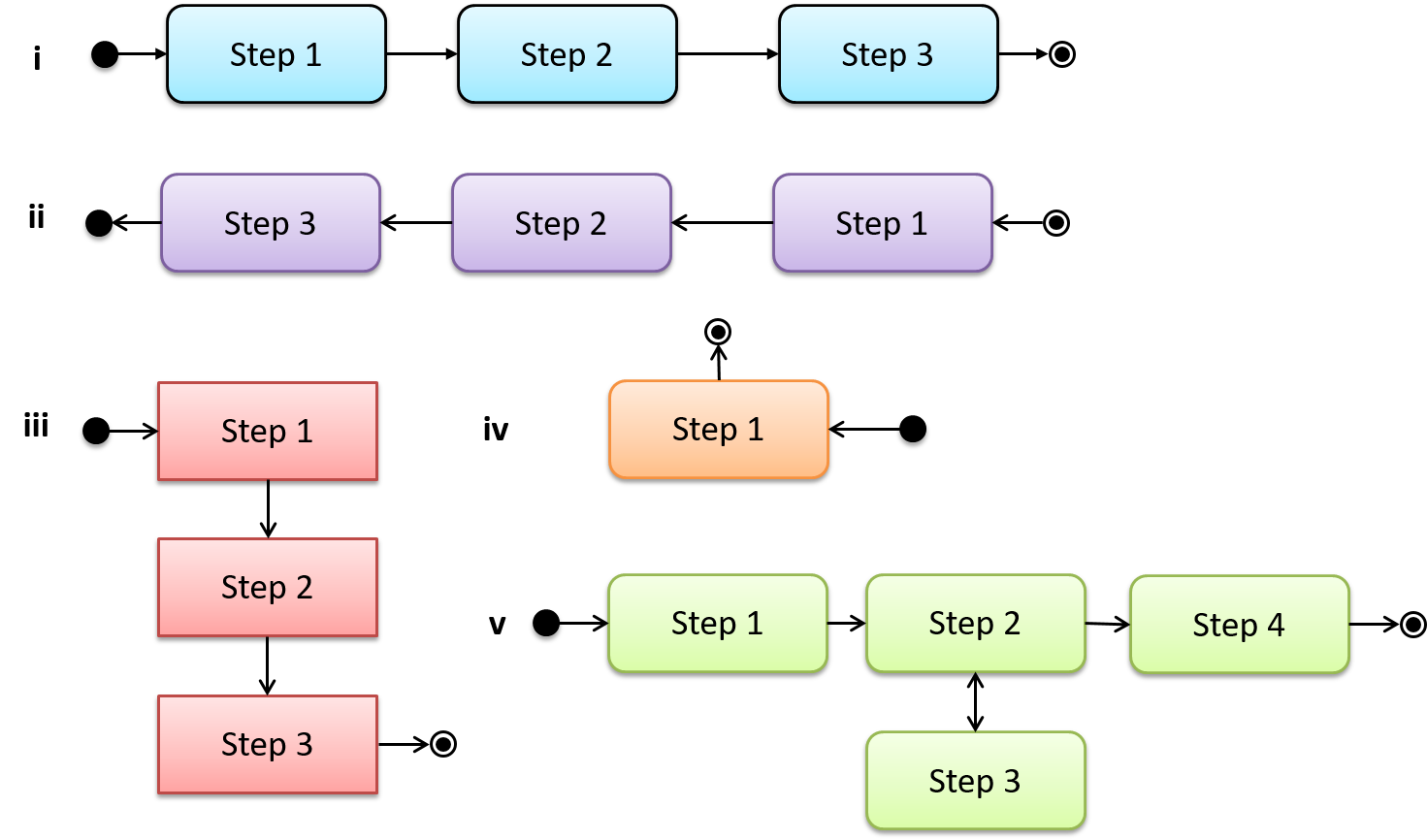 - iii : Incorrect. Action boxes should have rounded corners.