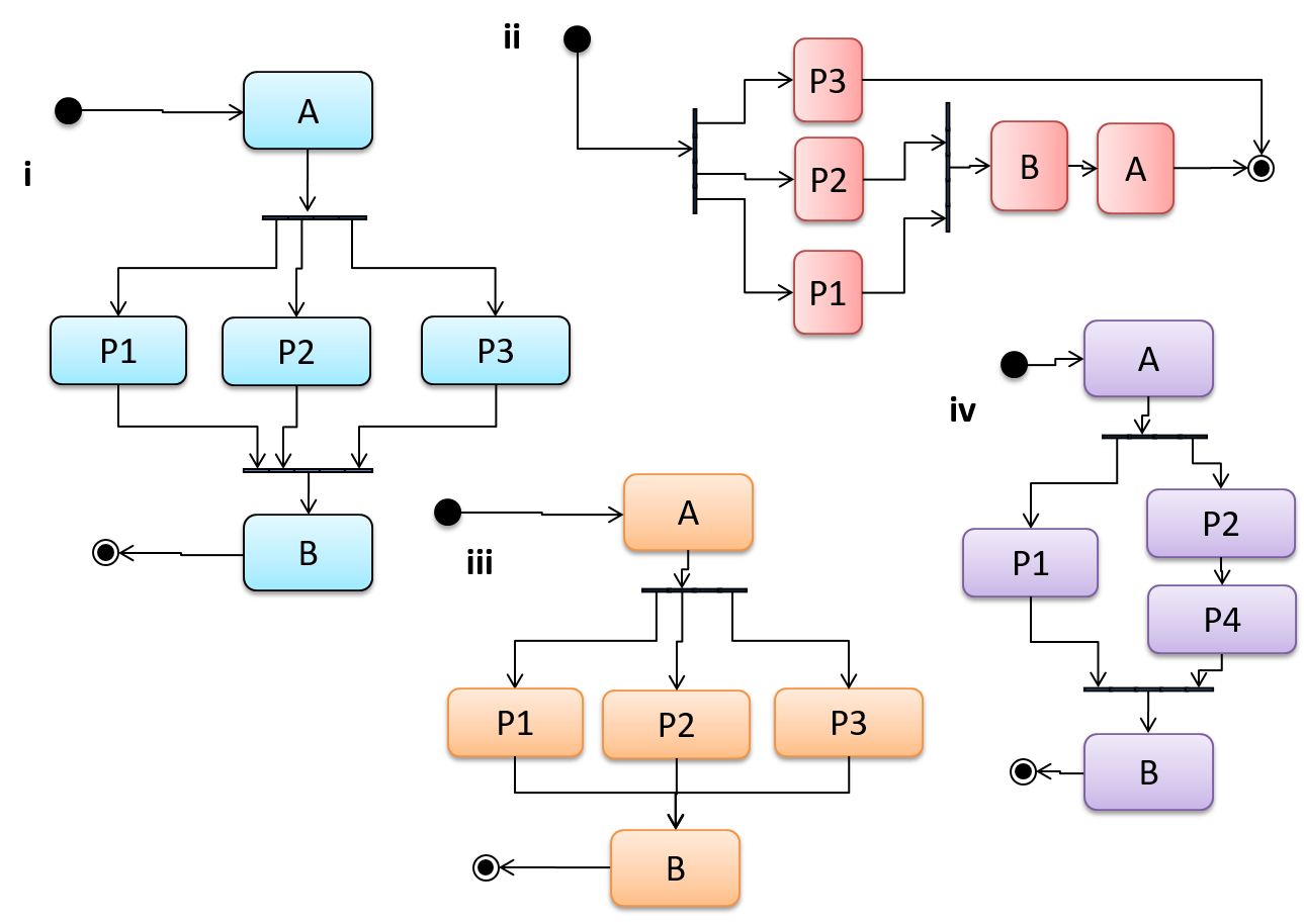 - ii : Incorrect. All parallel paths that started from a fork should end in the same join node.